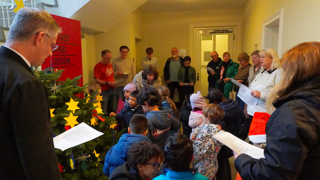 Wir verabschieden uns in die Weihnachtspause mit Bildern vom Tannenbaumschmücken im Generalvikariat. Auch in diesem Jahr haben unsere Kinder den Mitarbeiterinnen und Mitarbeitern im Erzbistum Hamburg mit fröhlichen, vorweihnachtlichen Liedern und selbst gebastelten Sternen eine Freude bereitet.